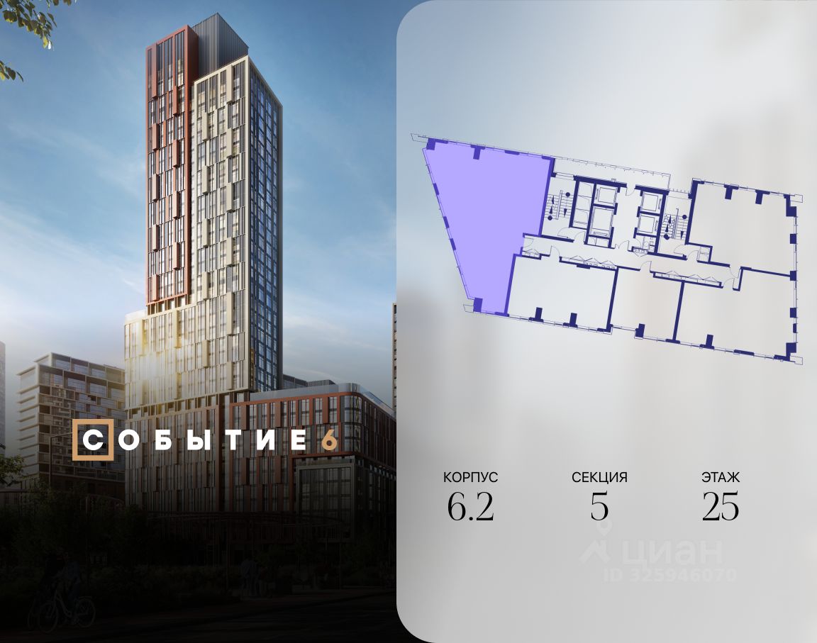 Продаётся 4-комнатная квартира от застройщика: общая площадь 130.90 м², жилая 59.90 м², кухня 28.20 м², 25-й этаж, жилой квартал "Событие-6", корпус 2 (секция 5) Срок сдачи: 1 квартал 2029 года.