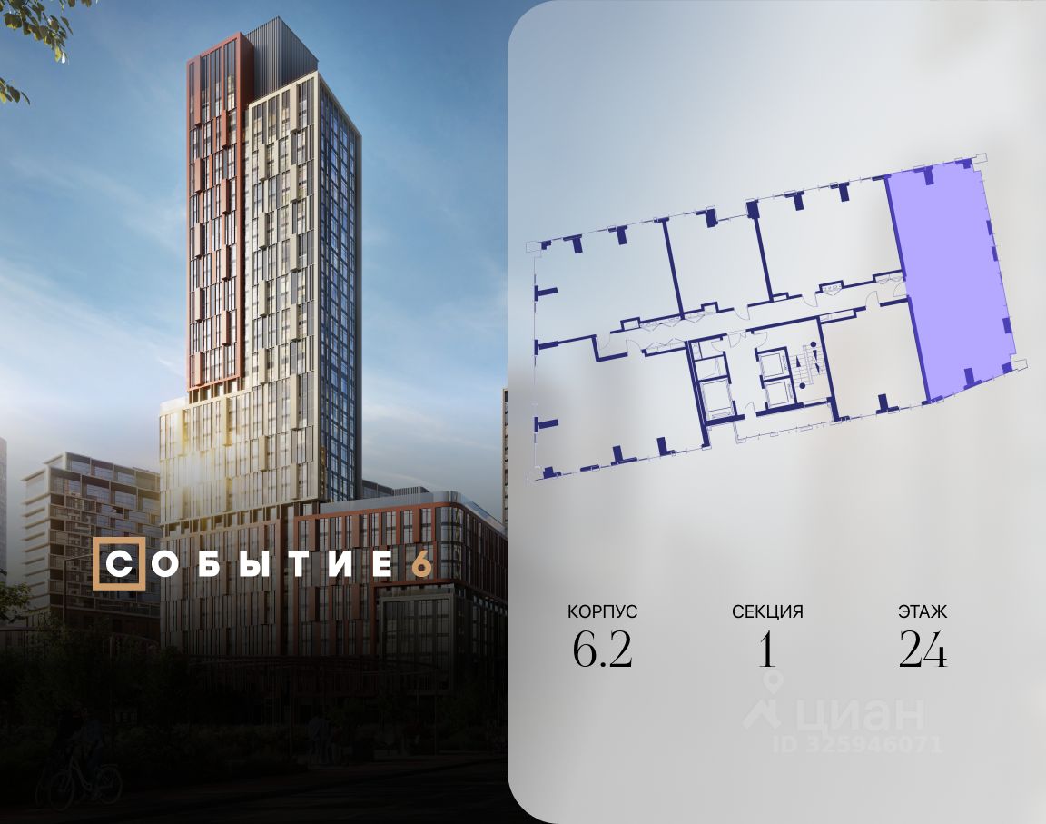 Продаётся 4-комнатная квартира от застройщика: общая площадь 111.50 м², жилая 54.90 м², кухня 24.00 м², 24-й этаж, жилой квартал "Событие-6", корпус 2 (секция 1) Срок сдачи: 1 квартал 2029 года.