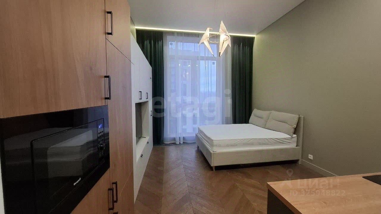 Продается просторная студия в современном жилом комплексе "Vangarden". Объект характеризуется высокой потолков 3,8 метра и панорамным остеклением на алюминиевом профиле.