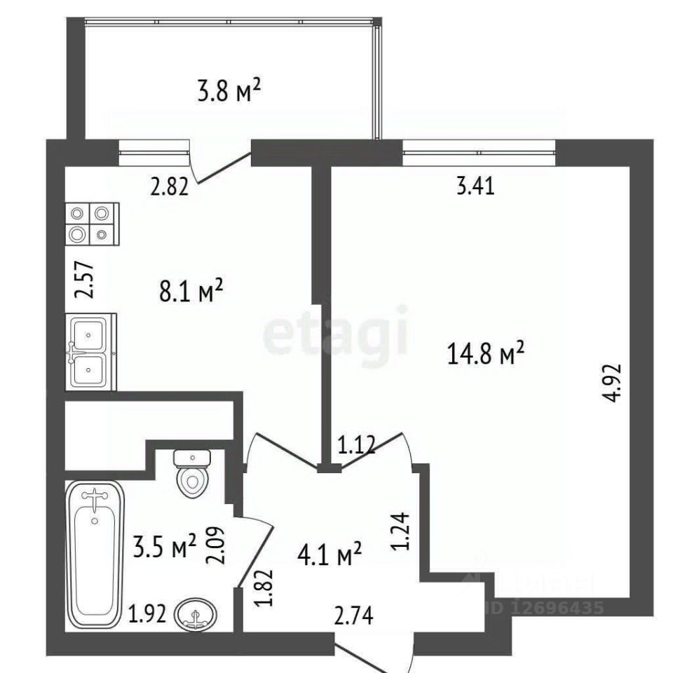 14,8 м²