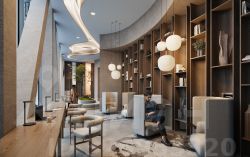 На мосту между башнями на 22-м этаже находится SocialHUB — предусмотрено 16 комфортных пространств для работы, отдыха и развлечений с панорамными видами и клубным форматом доступа.