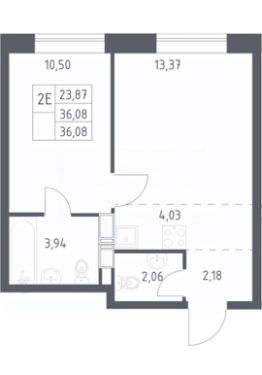 Квартира общей площадью 36,07 кв.м.
