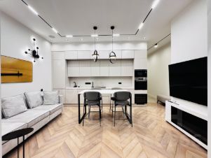 Интерьер выполнен по индивидуальному дизайн-проекту с вниманием к деталям и качеству материалов. Квартира полностью укомплектована мебелью и техникой — готова к проживанию без компромиссов.