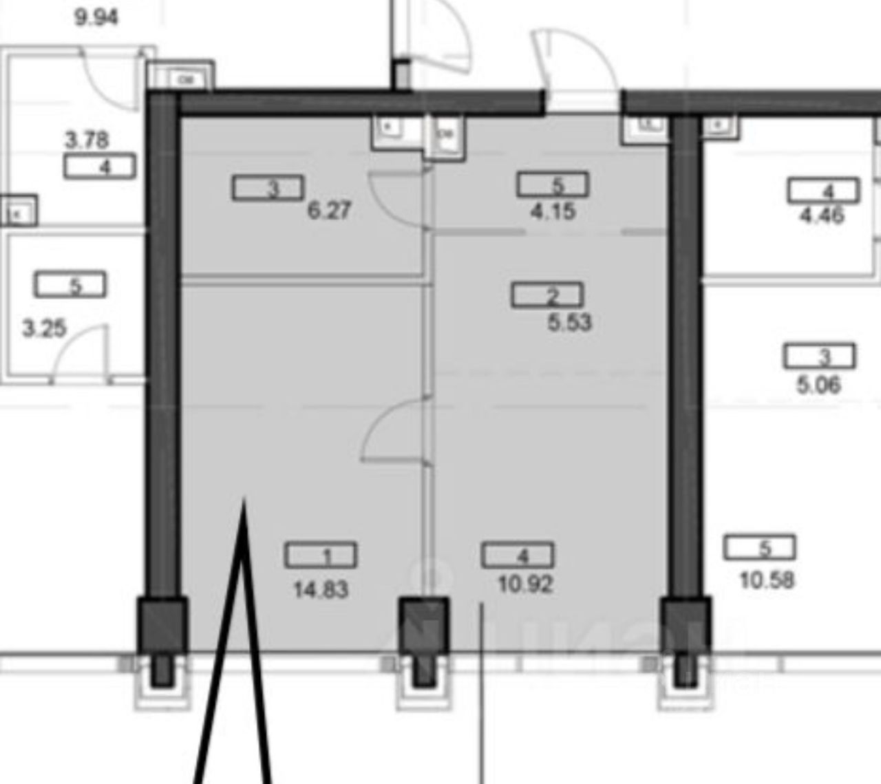 Просторная и светлая квартира на 5 этаже (из-за высокого первого этажа, 5 этаж - на уровне 7-8).