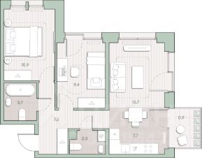 Продаётся 2-комнатная квартира общей площадью 53.1 кв.м. без отделки. Квартира расположена на 11 этаже корпуса 5.8 в жилом комплексе бизнес-класса "Среда на Лобачевского" в пешей доступности от метро "Аминьевская".