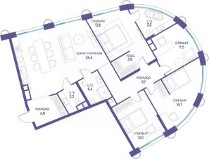 Продаётся четырехкомнатная квартира от застройщика: общая площадь 121.00 м², жилая м², кухня м², 16, жилой квартал "Остров 7", корпус 7 (7 квартал) (секция 2). срок сдачи: 4-кв. 2025.