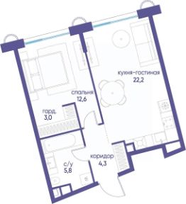 Продаётся однокомнатная квартира от застройщика: общая площадь 47.90 м², жилая м², кухня м², 18, жилой квартал "Остров 7", корпус 7 (7 квартал) (секция 2). срок сдачи: 4-кв. 2025.