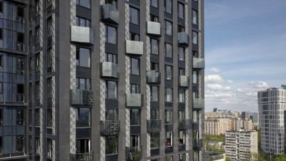 • Трехуровневая структура, где на верхнем ярусе вы увидите геометрические эркеры с панорамным остеклением, на среднем уровне расположены квартиры с окнами на 1-2 стороны, а на нижнем отделка австрийским клинкерным кирпичом.