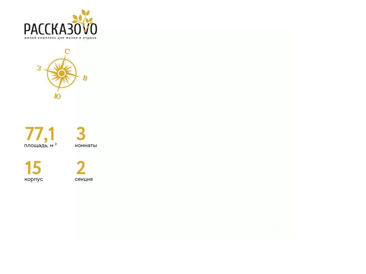 Продается 3-комнатная квартира в ЖК Рассказово на 12 этаже. Общая площадь квартиры составляет 77,4 кв.м. Квартира без отделки.