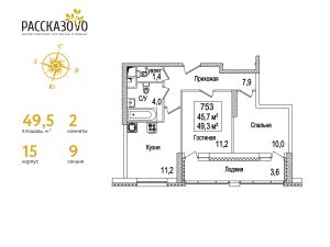 Продается 2-комнатная квартира в ЖК Рассказово на 17 этаже. Общая площадь квартиры составляет 49,5 кв.м. Квартира без отделки.