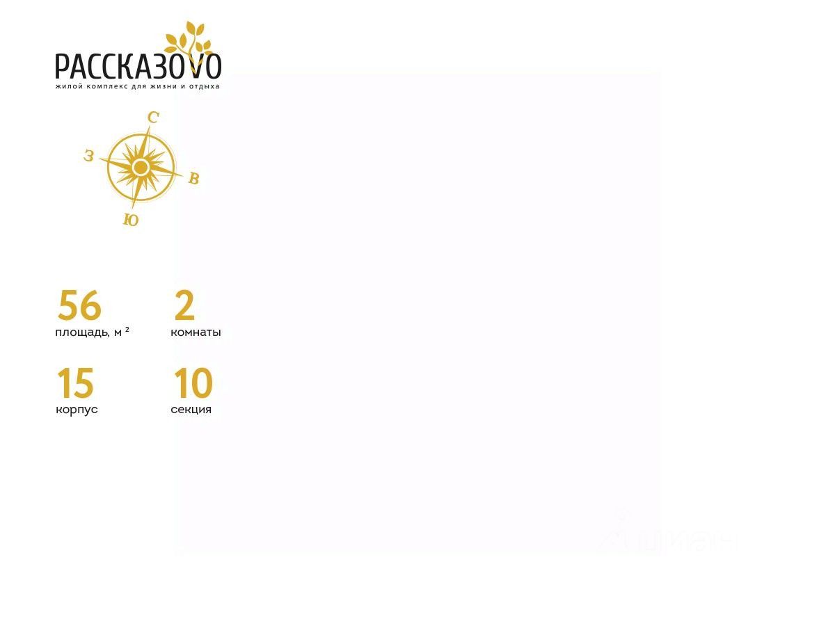 Продается 2-комнатная квартира в ЖК Рассказово на 17 этаже. Общая площадь квартиры составляет 56 кв.м. Квартира без отделки.
