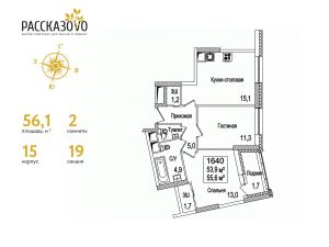 Продается 2-комнатная квартира в ЖК Рассказово на 12 этаже. Общая площадь квартиры составляет 56,1 кв.м. Квартира без отделки.