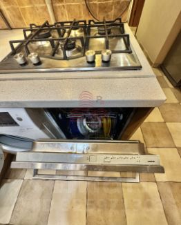 Кухня площадью обустроена всей необходимой мебелью и встроенной техникой (холодильник, духовой шкаф, вытяжка, посудомоечная и стиральная машины, газовая варочная плита).