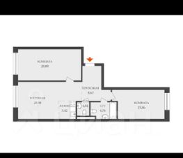 Планировка: просторная кухня гостиная и две спальные комнаты.