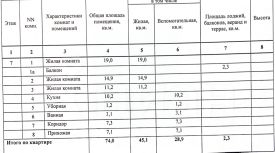 —Общая площадь 74 кв. м, 3 изолированные комнаты: 19 кв. м, 14,9 кв. м, 14,2 кв. м, просторная кухня 10,2 кв. м.