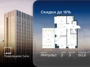 В Даниловском районе столицы (ЮАО) продаётся 3-комнатная квартира площадью 60.60 кв.м без отделки. Квартира расположена на 2 этаже 45-этажного корпуса 'Горизонт' в жилом комплексе бизнес-класса Level Павелецкая Сити. Высота потолков 3.00м.