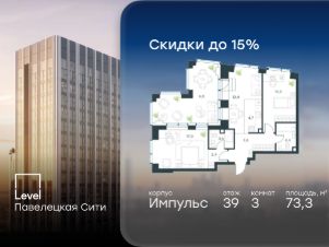 В Даниловском районе столицы (ЮАО) продаётся 3-комнатная квартира площадью 73.30 кв.м без отделки. Квартира расположена на 39 этаже 45-этажного корпуса 'Горизонт' в жилом комплексе бизнес-класса Level Павелецкая Сити. Высота потолков 3.00м.