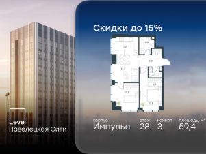 В Даниловском районе столицы (ЮАО) продаётся 3-комнатная квартира площадью 59.40 кв.м без отделки. Квартира расположена на 28 этаже 45-этажного корпуса 'Горизонт' в жилом комплексе бизнес-класса Level Павелецкая Сити. Высота потолков 3.00м.