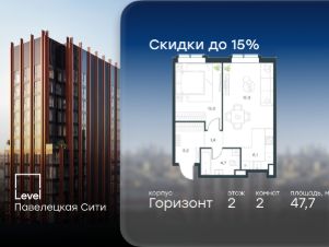 В Даниловском районе столицы (ЮАО) продаётся 2-комнатная квартира площадью 47.70 кв.м без отделки. Квартира расположена на 2 этаже 20-этажного корпуса 'Горизонт' в жилом комплексе бизнес-класса Level Павелецкая Сити. Высота потолков 3.00м.