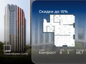 В Даниловском районе столицы (ЮАО) продаётся 3-комнатная квартира площадью 68.70 кв.м без отделки. Квартира расположена на 4 этаже 27-этажного корпуса 'Горизонт' в жилом комплексе бизнес-класса Level Павелецкая Сити. Высота потолков 3.00м.