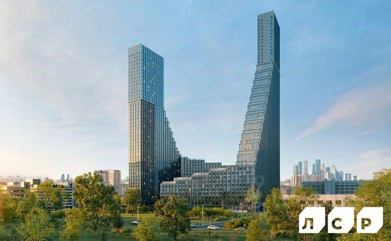 Комплекс объединяет 2 зеркальные башни, возвышающиеся из общего каскадного основания.
