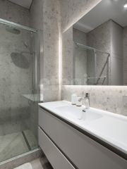 - техника: стиральная машина, сушильная машина, холодильник с морозильной камерой, духовой шкаф, вытяжка, электрическая плита, посудомоечная машина, 2 кондиционера, 2 ТВ, подогрев пола в санузле.