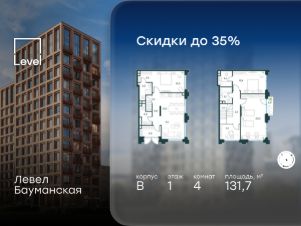 В Басманном районе (ЦАО) продается 4-комнатная квартира площадью 131.70 кв.м без отделки. Квартира расположена на 1 этаже 17-этажного корпуса " B" в жилом комплексе бизнес-класса Левел Бауманская (компания Level Group).