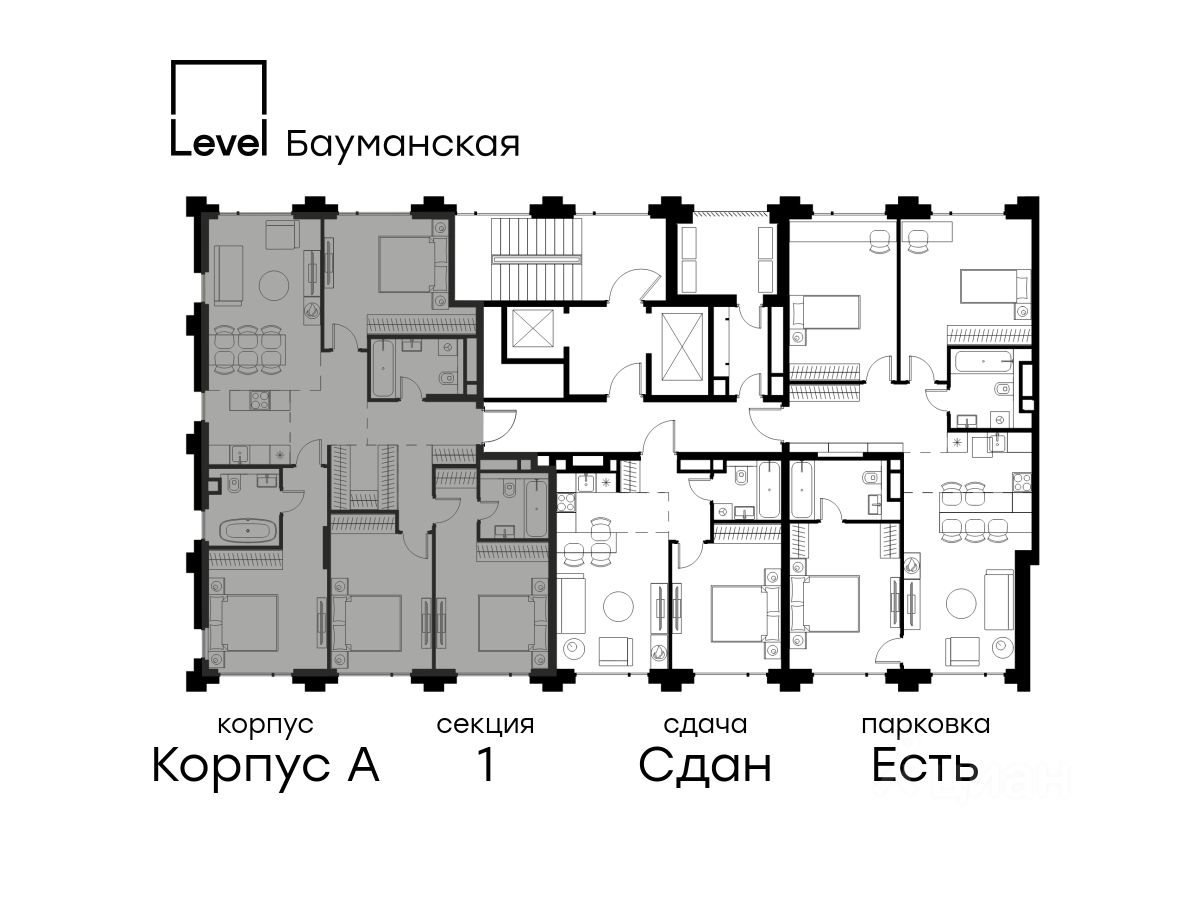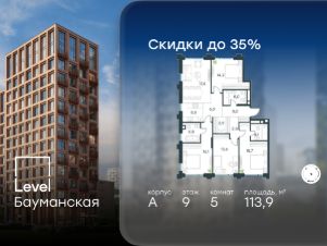 В Басманном районе (ЦАО) продается 5-комнатная квартира площадью 113.90 кв.м без отделки. Квартира расположена на 9 этаже 9-этажного корпуса " A" в жилом комплексе бизнес-класса Level Бауманская (компания Level Group).