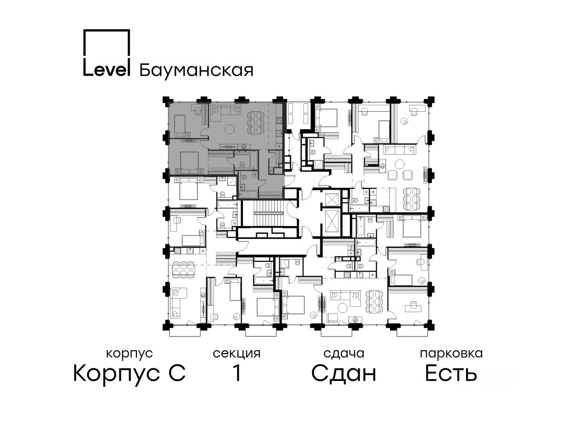 В Басманном районе (ЦАО) продается 3-комнатная квартира площадью 76.40 кв.м без отделки. Квартира расположена на 21 этаже 21-этажного корпуса " C" в жилом комплексе бизнес-класса Level Бауманская (компания Level Group).