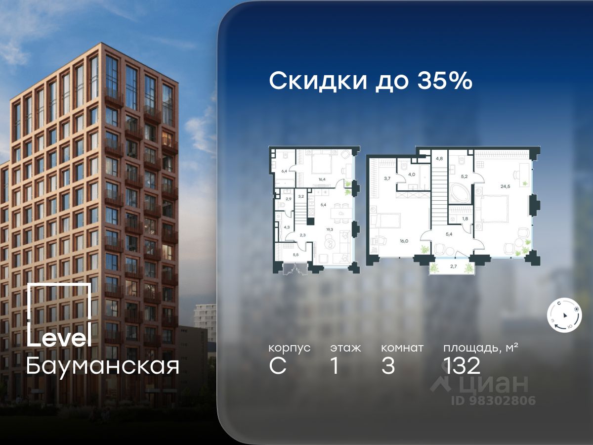 В Басманном районе (ЦАО) продается 2-х этажный ситихаус площадью 132.00 кв.м без отделки. Ситихаус расположен на 1 этаже 21-этажного корпуса " C" в жилом комплексе бизнес-класса Level Бауманская (компания Level Group).