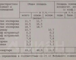Общая площадь 69 м², жилая 46,9 м², кухня 8 кв.м.