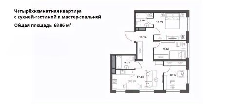 - Три изолированные комнаты площадью (10.15 + 9.42 + 11.86 кв.м), одна из комнат реализована в концепции "мастер спальни" и оборудована отдельным сан.узлом;