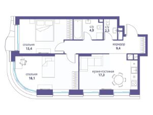 Продается 2-комнатная квартира от застройщика: общая площадь 66.20 м², жилая 33.50 м², кухня 17.30 м², 24-й этаж, жилой квартал "Вдохновение", корпус 34 (секция 1). Срок сдачи: 4 квартал 2027 года.