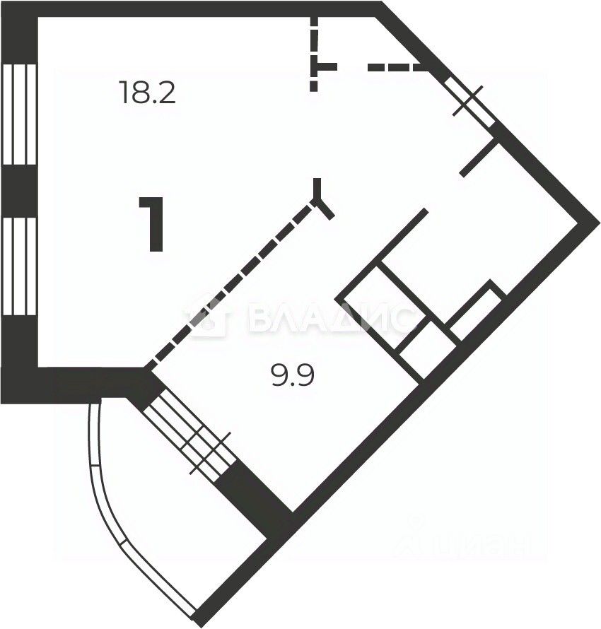 Квартира расположена на 2 этаже 12-этажного монолитного дома. Общая площадь — 38,4 кв. м, жилая — 9,9 кв. м, кухня — 18,2 кв. м. Высота потолков 2,7 м создаёт ощущение простора и свободы. Окна выходят на улицу, а наличие лоджии добавляет комфорта.