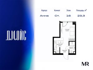 В продаже квартира площадью 23.34 м² с предчистовой отделкой на 16 этаже 55 этажного дома. Квартира расположена в корпусе Анна.