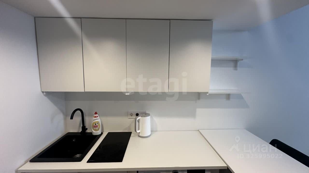 Продается современная студия апартамент площадью 20,3 кв. м с высокими потолками 3,4 метра, что позволило рационально организовать пространство.