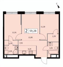 Просторная и светлая квартира площадью 59,4 кв. м. Продуманная планировка квартирывключает в себя отдельное расположение спальни от обеденно - гостиной зоны. Из оконгостиной открывается вид на Останкинскую башню, колесо обозрения и другие высотные