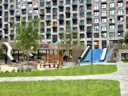 Для автовладельцев спроектирован двухуровневый паркинг на 618 машиномест. В комплексе предусмотрен собственный торговый центр и гастромаркет. В проект включен благоустроенный двухуровневый двор. Уровни соеденены пешеходным мостом. Для детей запланированы большой игровой комплекс на верхнем уровне и игровая зона на нижнем уровне, к которой ведет горка. Для взрослых разработаны лаунж-зоны и воркаут. Предусмотрен велопарк и площадка для выгула собак за периметром двора. Безопасность обеспечивается за счет закрытой охроняемой территориии.