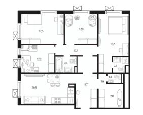Продаётся 4-комнатная квартира в сданном доме (улица Вертолётчиков, 21к4 (Дом 21 Корпус 4)), срок сдачи: III-кв. 2022, общей площадью 118.2 кв.м., на 3 этаже. Жилой комплекс "Мой адрес На Вертолетчиков" расположен всего в 10 минутах пешком от станции метро Некрасовка. Жилой комплекс состоит из четырех 18-этажных корпусов башенного типа и отдельной одноэтажной пристройки для коммерческих помещений. В жилом комплексе "мой адрес На Вертолетчиков" представлены: 544 квартиры, 119 индивидуальных кладовых и 34 коммерческих помещения.
