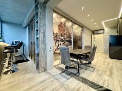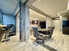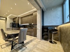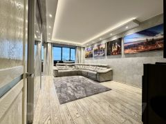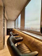 - кухня, совмещенная с гостиной комнатой и видовым, совмещенным балконом, общая площадь около 50 м² (имеются откатные перегородки);