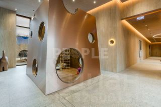 Общее дизайнерское лобби с охраной на 2 башни, где расположена зона ресепшн, охрана. В лобби есть детская зона, зона ожидания, колясочная, зона ухода за животными. На крыше стилобата расположена еще одна общая зона отдыха для жильцов. Во дворе есть воркаут зона, игровая площадка с горками и песочницей.