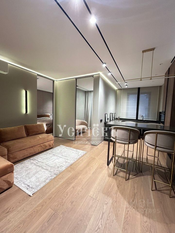 Апартамент полностью меблирован и укомплектован всей бытовой техникой (винный шкаф, посудомоечная машина, варочная панель, духовой шкаф, холодильник, стиральная машинка, кондиционер, гладильная система).