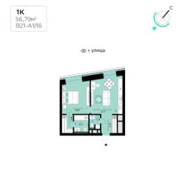 В продаже — однокомнатная квартира с чистовой отделкой, общей площадью 56,79 кв. м. Квартира расположена на пятом этаже одинадцатиэтажной секции корпуса класса Адвансд в новом районе СберСити, который строит Сбер. Дом находится на второй береговой линии Москвы-реки.