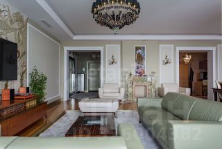 Пятикомнатная квартира на 31 этаже жилого комплекса "Воробьёвы горы" предлагает уникальные панорамные виды на озеро, парк и Москва-Сити. Пространство оформлено дизайнерским ремонтом в стиле американской классики с применением премиальных материалов: панорамные видовые окна дополнены широкими подоконниками из натурального камня.
