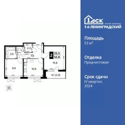 Продаётся 2-к квартира номер 123 общей площадью 53 кв.м. на 10-м этаже 13 этажного здания. Отделка Whitebox. Цена с учётом скидки.