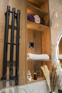 • Продуманный дизайн в стиле теплого минимализма: многоуровневая система освещения со сценариями, канальная сплит-система, теплый пол в санузле, black-out шторы, алюминиевые перегородки.