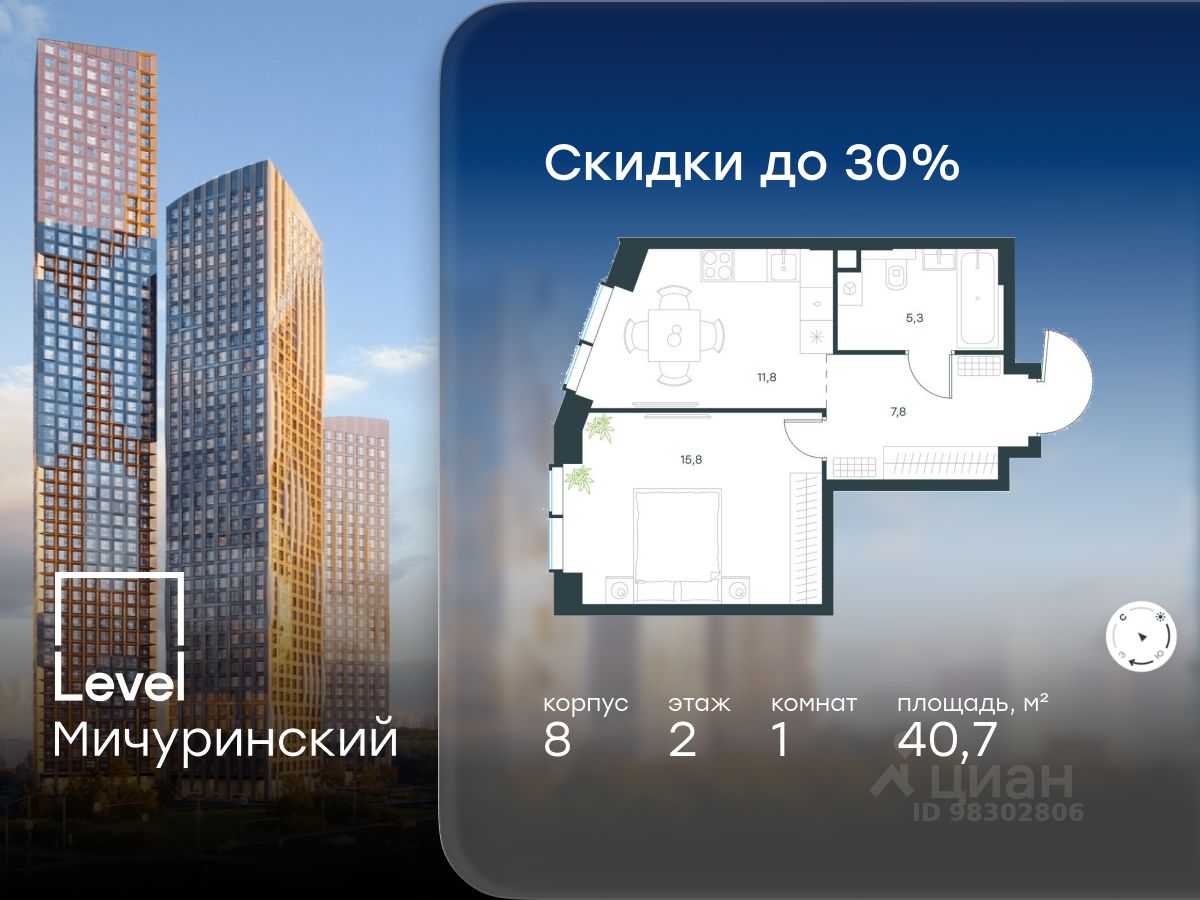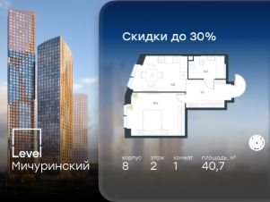 В жилом квартале, расположенном на границе с природным заказником "Долина реки Очаковки", продаётся 1-комнатная квартира площадью 40.70 кв.м без отделки. Квартира расположена на 2 этаже 48-этажного корпуса 8 в жилом комплексе бизнес-класса Level Мичуринский (компания Level Group/Левел групп).