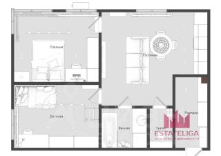 Квартира 2-х комнатная или евро-3, с совмещенной кухней-гостиной, раздельным санузлом, спальней, детской (которая, с учетом электрики, спланирована как для детского, так и для подросткового возраста, так же может служить отдельным кабинетом).