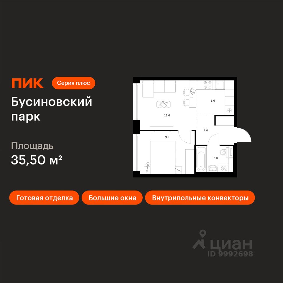 Продаётся 1-комн. квартира площадью 35,5 кв.м на 3 этаже 24 этажного дома (Корпус 22.4, Секция 4) проекта ПИК Бусиновский парк. Светлый просторный подъезд на уровне земли, функциональная планировка, большие окна, c отделкой.