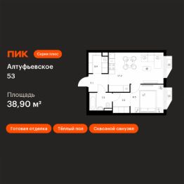Продаётся 1-комн. квартира площадью 38,9 кв.м на 3 этаже 32 этажного дома (Корпус 1.1, Секция 2) проекта ПИК Алтуфьевское 53. Светлый просторный подъезд на уровне земли, функциональная планировка, большие окна, c отделкой.